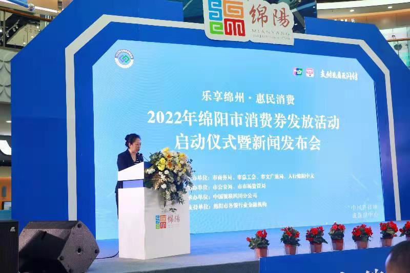 2022年4月29日,“樂享綿州·惠民消費”—2022年綿陽市消費券發放活動在涪城區萬達正式啟動。市人民政府副市長李南希出席并宣布啟動,市商務局、市總工會、市文廣旅局、市公安局、市市場監管局、人民銀行成都分行、人民銀行綿陽中心支行、中國銀聯四川分公司,以及市內各銀行業金融機構、參與商戶、媒體代表出席本次活動。